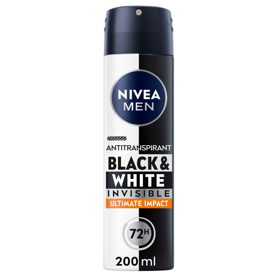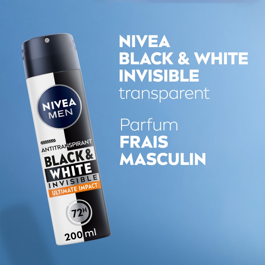 Déodorant spray NIVEA MEN Black & White 72h, anti-traces sur vêtements, technologie anti-odeurs brevetée, sans alcool et sèche rapidement. 200ml.