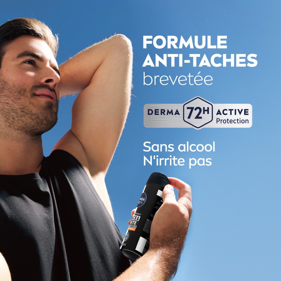 Le déodorant anti-transpirant NIVEA MEN Black & White Ultimate Impact a été développé pour vous offrir une protection anti-transpirante fiable pendant 72h grâce à la protection Derma 72h Active. Il ne laisse pas de résidus, ni de traces blanches sur les vêtements noirs, ni de traces jaunes sur les vêtements blancs. Sa formule anti-traces alliée à notre technologie unique et brevetée anti-odeurs vous garantit une fraîcheur longue durée et une protection efficace tout en respectant votre peau. Formulé sans alcool, il n’irrite pas la peau de vos aisselles. Tolérance cutanée testée sous contrôle dermatologique. Sèche rapidement. Format spray 200 ml. Existe aussi en format bille 50 ml. Conseils d’utilisation : vaporisez à 15 cm de l'aisselle et laissez sécher avant de vous habiller.