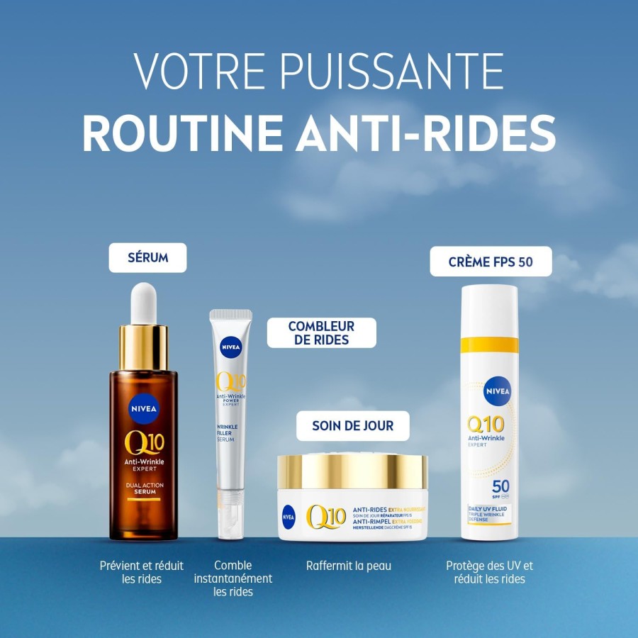 Soin ciblé NIVEA Q10 Combleur de Rides au Q10 et peptides Bioxifill, comble les rides dès 5 minutes et les réduit de 50% en 4 semaines. 15ml.